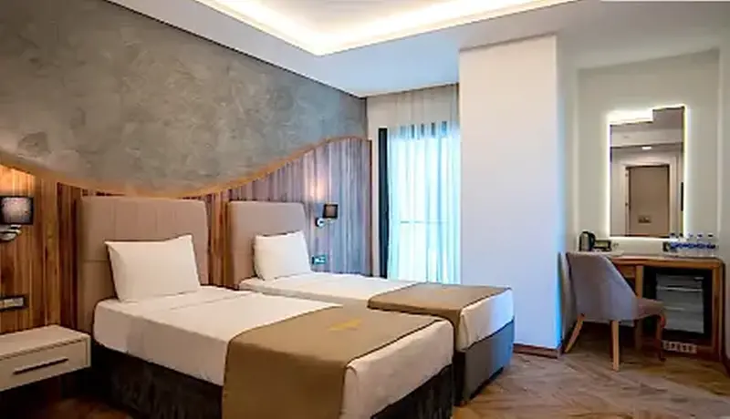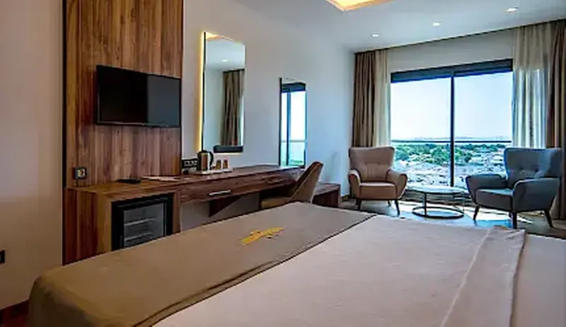 Double bed, LCD satellite TV, central air conditioning, electronic safe, telephone, armchair, tea & coffee set and kettle, shower, WC, makeup mirror, hairdryer, ceramic floor, internet connection. Room Features Ceramic Flooring Armchair Telephone Electronic Safe Balcony LCD TV Balcony chair and table Balcony Internet connection Ceramic Flooring Hairdryer Make-up mirror Shower WC Kettle Tea & coffee set Double bed LCD TV Central air conditioning Electronic Safe Armchair Telephone