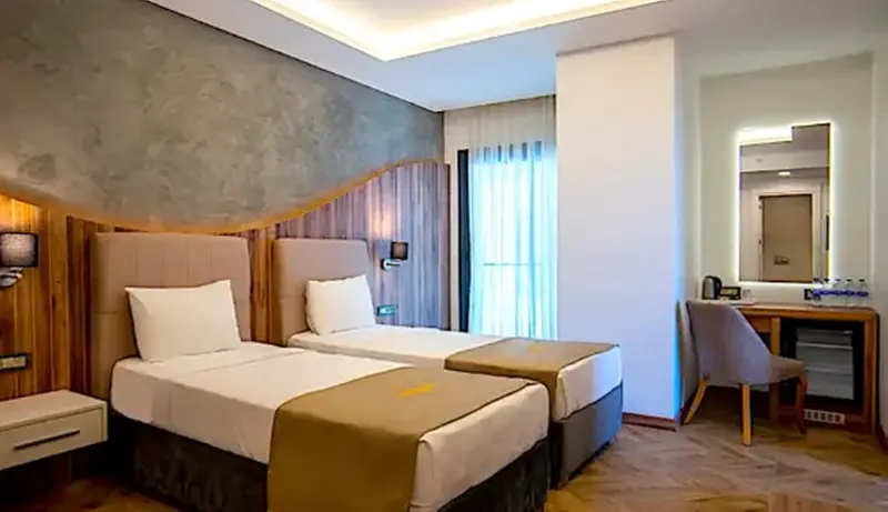 Double bed, LCD satellite TV, central air conditioning, electronic safe, telephone, armchair, tea & coffee set and kettle, shower, WC, makeup mirror, hairdryer, ceramic floor, internet connection. Room Features Ceramic Flooring Armchair Telephone Electronic Safe Balcony LCD TV Balcony chair and table Balcony Internet connection Ceramic Flooring Hairdryer Make-up mirror Shower WC Kettle Tea & coffee set Double bed LCD TV Central air conditioning Electronic Safe Armchair Telephone