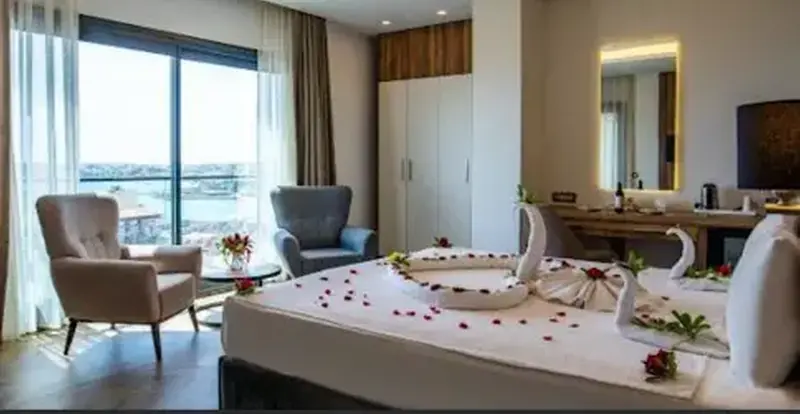 Double bed, LCD satellite TV, central air conditioning, electronic safe, telephone, armchair, tea & coffee set and kettle, shower, WC, makeup mirror, hairdryer, ceramic floor, internet connection. Room Features Ceramic Flooring Armchair Telephone Electronic Safe Balcony LCD TV Balcony chair and table Balcony Internet connection Ceramic Flooring Hairdryer Make-up mirror Shower WC Kettle Tea & coffee set Double bed LCD TV Central air conditioning Electronic Safe Armchair Telephone